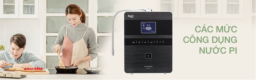 Nước Pi mức 3 (pH9–9.5 ) dùng nấu nướng hằng ngày thay nước thường, pha trà, nấu cơm canh, uống thải độc cơ thể, thải độc rượu bia.